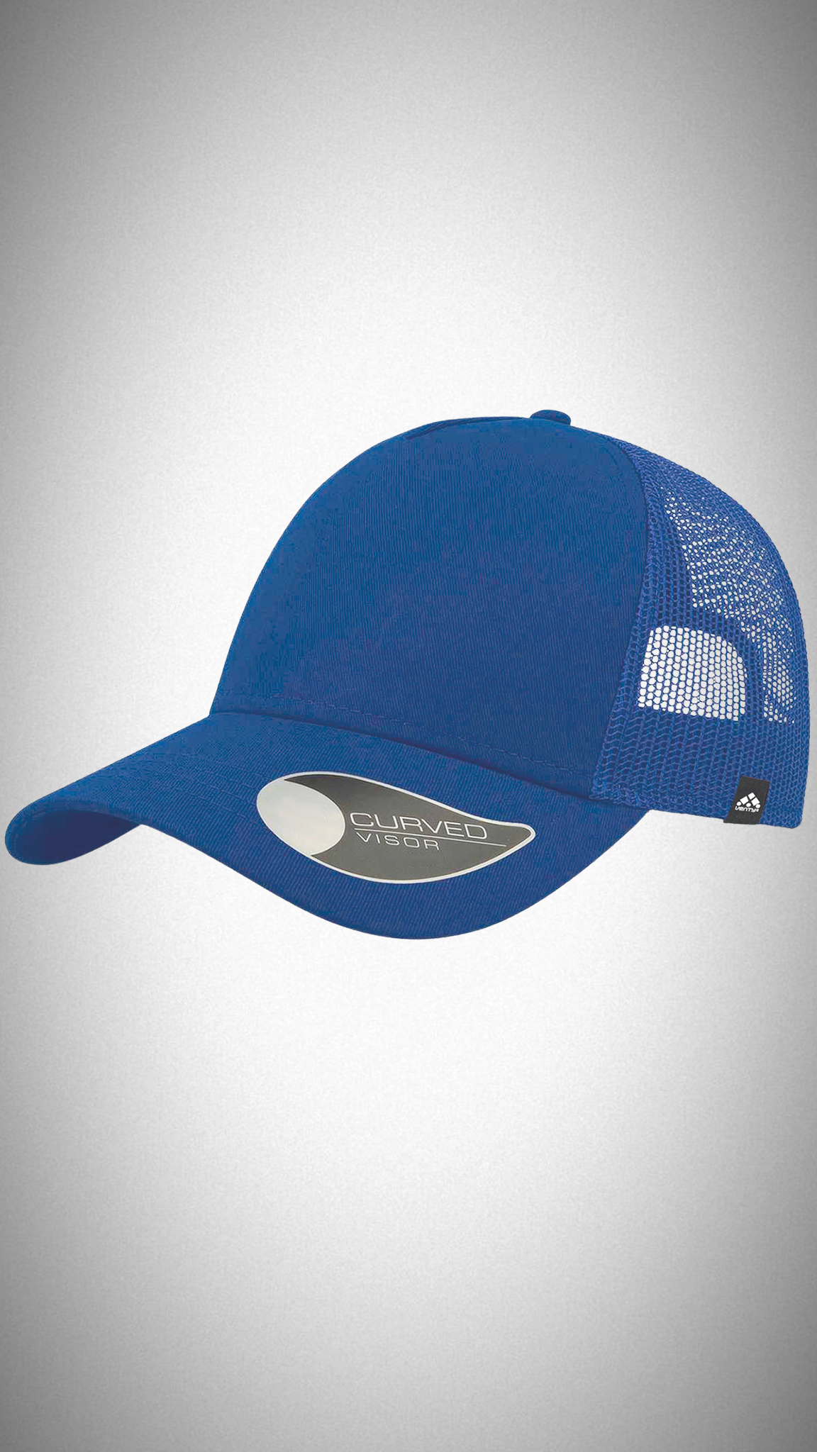 Cappellino a 5 pannelli, mesh posteriore e laterale, pannello frontale rinforzato, ideale per le personalizzazioni.